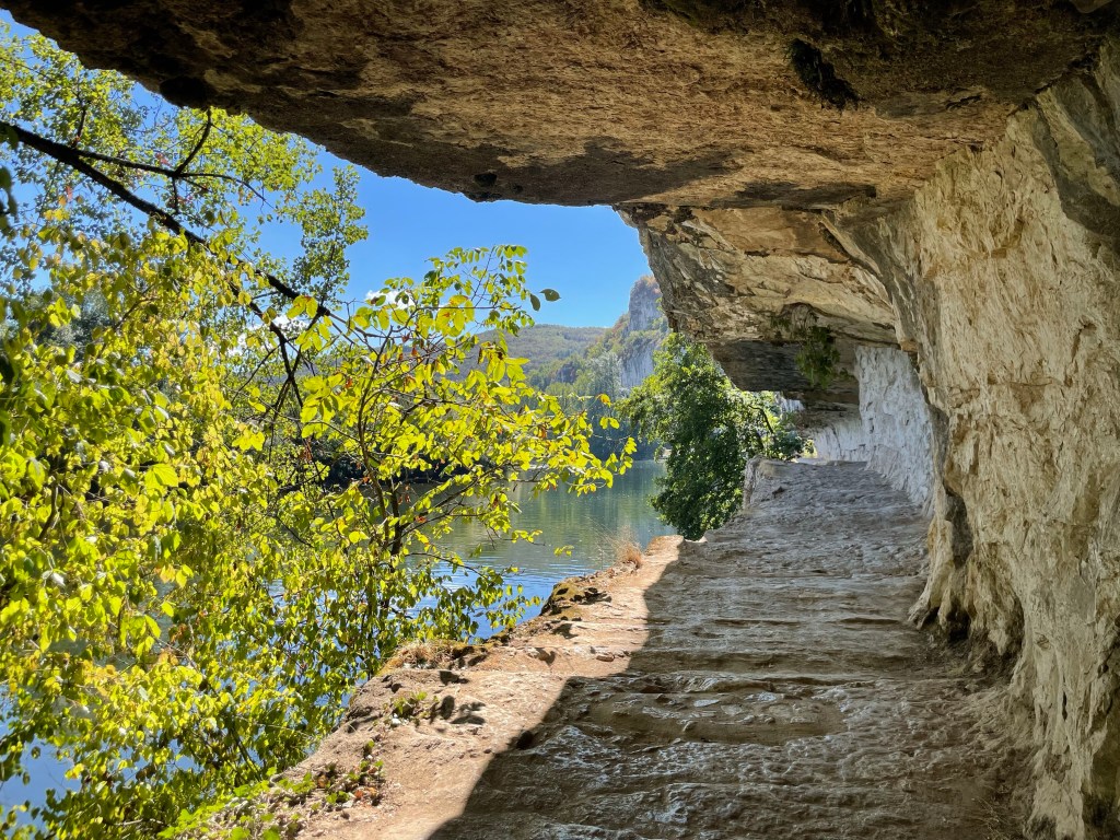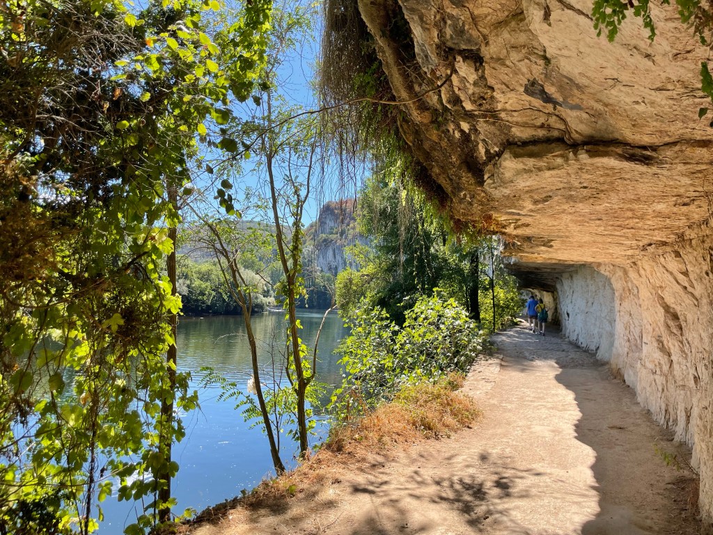 A highlight of yesterday and today, apart from St. Cirq Lapopie, was walking along the Chemin de halage, a tow path along the river (the Lot), carved out of the cliff. Ever since I first saw the photos of this I have been looking forward to this portion of the walk. Here are photos from yesterday and today:
