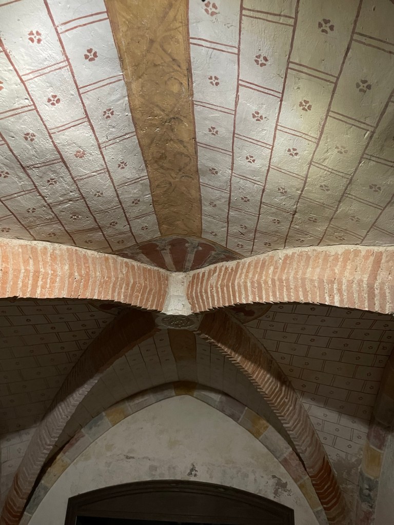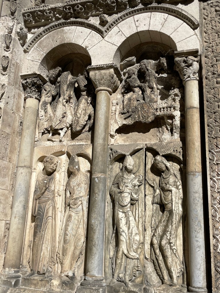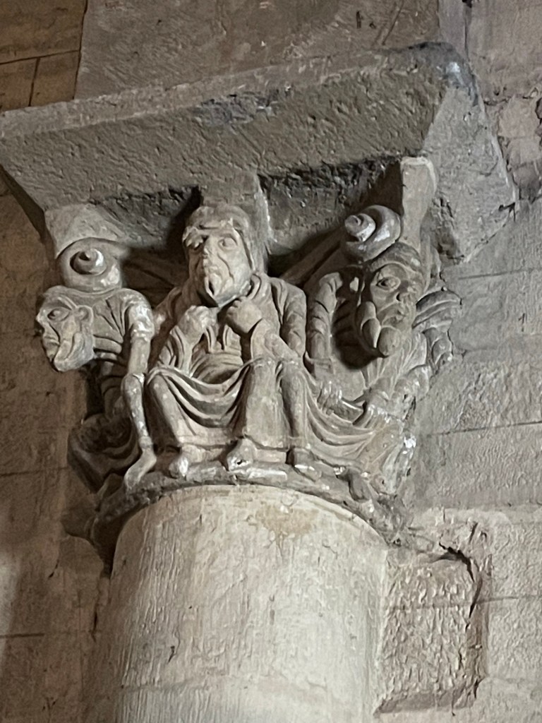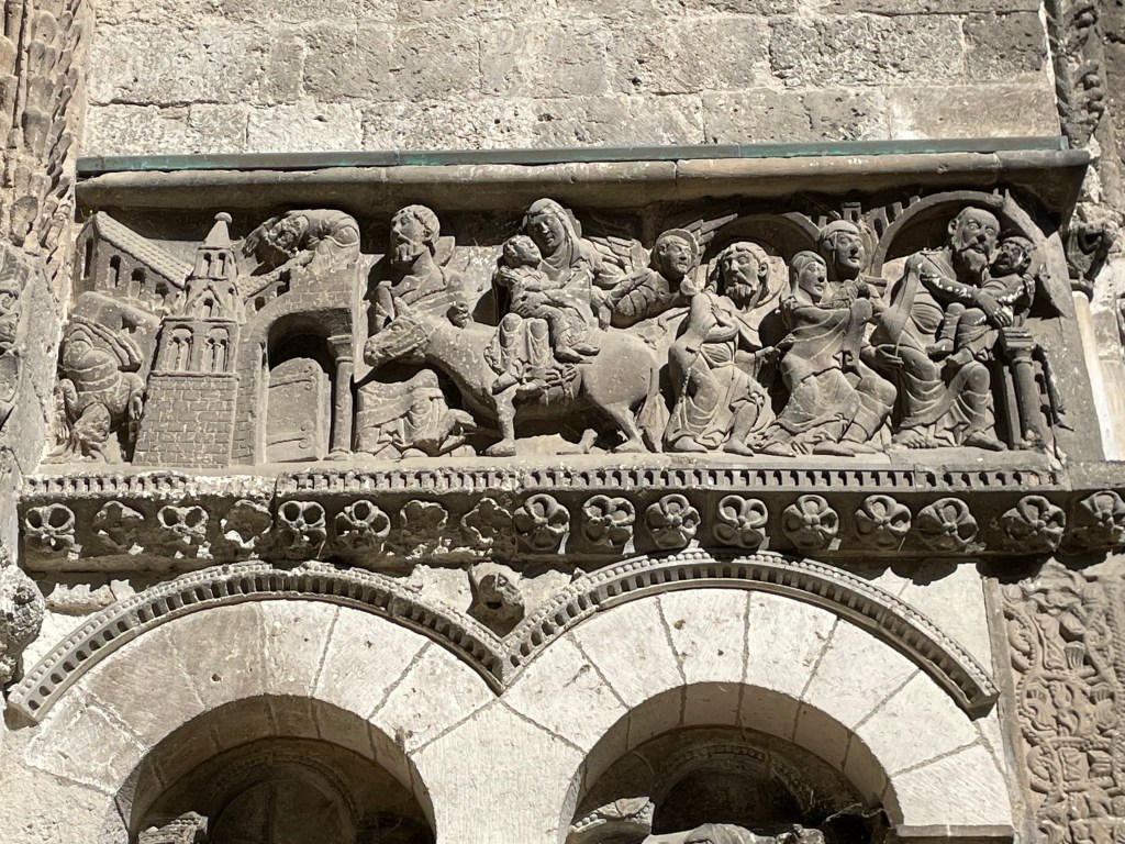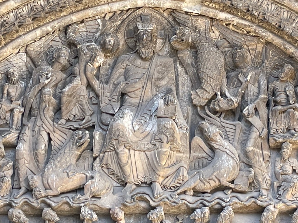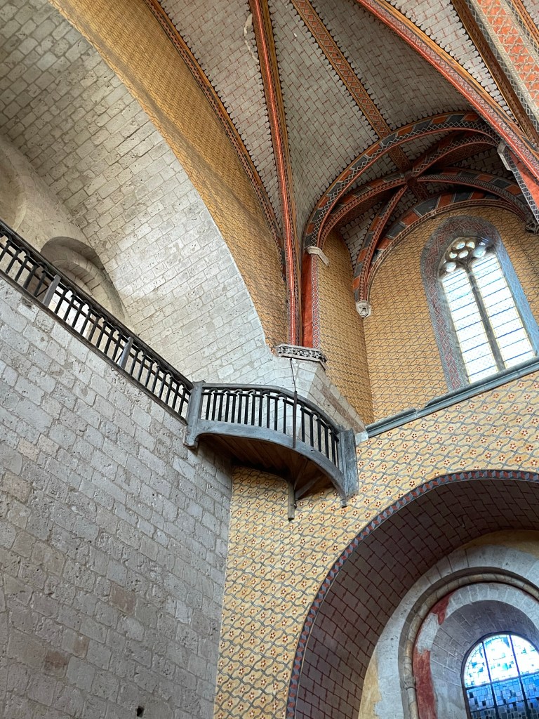 I am SO glad I did that. It gave me time to see Moissac. And Moissac is not to be missed. It is yet another beautiful medieval town—well, the historic center of it is—it is actually a fairly large town so the medieval center is surrounded by a modern town—like so many towns and cities in Europe. The heart of Moissac is Abbey St. Pierre. The Benedictine Abbey was founded in the 7th century, but really took off in the 10-11th century when it was linked to the Cluny order, and the Abbot here became second in command of that order. The current church and cloisters date to the 11th century. Yes, 11th. They are magnificent. The Romanesque south portal of the church and the cloisters are among the most impressive of their day. Every single capital in the cloisters is carved, and the vast majority of them depict Biblical stories, many with captions. The south portal door of the church is so awe-inspiring I actually burst into tears. Something about this artwork that was done more than 1000 years ago, and is still here, surviving the elements and wars and Protestant destruction of everything Catholic in so many places just hit me. When you walk inside the church, it looks like it is wall-papered, but it’s painted. I’ll share as many photos as I can.