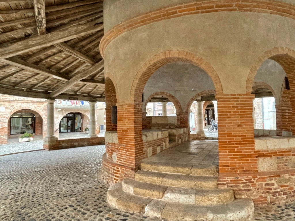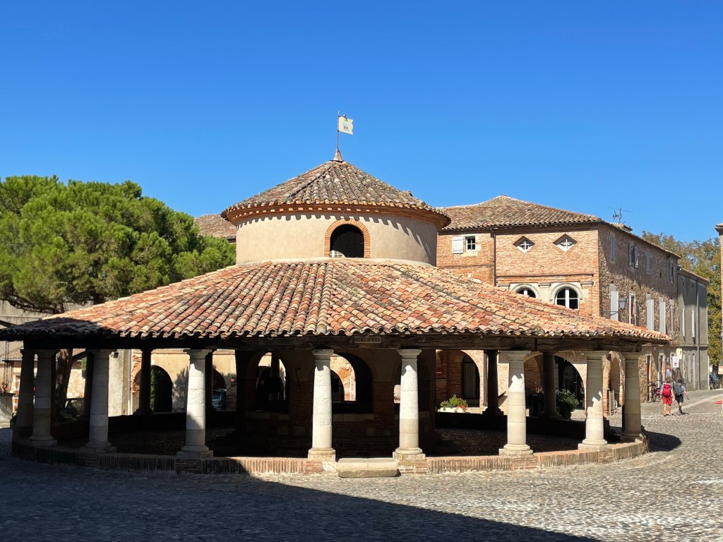 Now to go back to yesterday and Auvillar. Auvillar is one of those special, beautiful villages. What makes it unique is the circular market, Halle aux Grains, and clock tower Tour de L’Horloge which date from the 16th century. The church is also wonderful and dates from the 12th century, but has had much work done on it over the centuries, including a gorgeous Baroque altar. I’m not a huge fan of Baroque, but I thought this was beautiful. Auvillar is one of those “most beautiful villages in France.” And I would agree. I stayed in a beautiful gite that is relatively new, in a centuries old building that the owners gutted to create their home and the gite. However, it was only a B&B, not demi-pension (serving dinner). Normally this would not be a problem, because there are several restaurants. But apparently Thursday is “rest day” in Auvillar. I don’t know how you are supposed to know that ahead of time. The only restaurant open was the pizza place and since it was the only place open, you had to have a reservation. There was only one guy working—cooking and serving, and when I stopped to see if I could make a reservation he said the earliest he could serve me was 8:30. Way too late for a pilgrim’s dinner! So thanks to some new French friends, and the kindness of strangers, I actually had a feast, that I can’t tell you about. But trust me, MUCH better than pizza! One of the sayings among pilgrims is “the Camino provides,” and yesterday evening was a prime example! The other example of that was that I once again had a room to myself last night. I was in a twin room, and even though the gite was fairly full, she did not need to put anyone in the other bed. Since I hadn’t slept well the night before (worst mattress of the trip!), it was wonderful to have my own room again, and I slept very well.