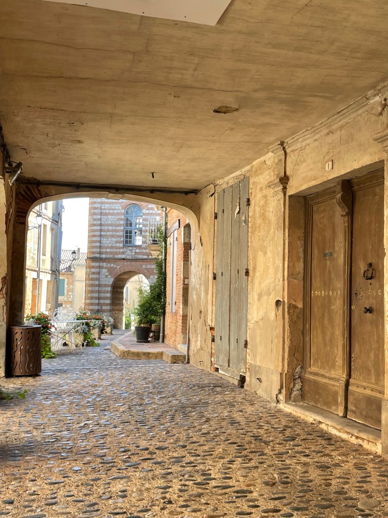 I’m going to start with today and work back if I have enough energy. I knew I could not walk 30 km from Lauzerte to Moissac. In fact, I have realized I do not have it in me to walk 30 km on ANY day. My feet just can’t do it. But I had already booked and prepaid for tonight’s gite in Moissac. The gite owner from last night, in Lauzerte helped me. Gite owners are the most generous helpful people on the planet, I think. She advised me to walk 13 km to the town of Durfort Lacapelette and then take a taxi the rest of the way to Moissac. She said the walk into Moissac is not much fun anyway. And she was right. Walking into bigger towns on sidewalks past all the residential areas and businesses that lead into town is the worst part of the walk. She helped me arrange the taxi (it’s not like NYC where you can just flag one down!), and it worked like a charm. I got to Durfort early enough to have lunch in the cafe, then waited on the terrace as I was instructed and my taxi arrived just when it was supposed to. The driver was also one of the most helpful people on the planet and took me right to the gite here in Moissac. It’s on a busy, narrow road which you can’t stop and park on, so he parked a block away, got out and walked me to the gite so I didn’t have to find it on my own.