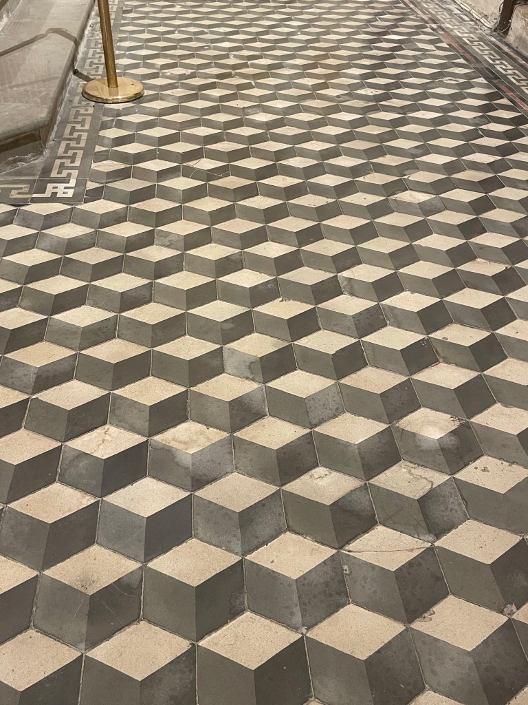 The paintings are amazing. And it is just mind-blowing to look at them and realize human beings were there, painting them more than 30,000 years ago. I loved the spotted horses, and the head of the bear, and the hands. They are “negative” hands, one in ochre, and the others in the black pigment. They are done by a very precise “spitting” method of spray painting. They placed their hand on the rock, put the mixture of paint in their mouths, and spit the paint around their hand. The guide said it is not an easy technique to master. There are also footprints—not painted ones, real ones. They don’t know just how old they are, but they can tell from the layer of calcite over them that they are at least 12,000 years old, and are probably those of a 10-12-year-old. The cave entrance the painters would have used was blocked by a landslide,—that’s why they went undiscovered until the teens found another way in, so they know the footprints predate the landslide. Some of the places where the paintings are would only have been accessible by crawling through a tunnel on your stomach. Of course, we did not have to do that! They have excavated the tunnel so you can walk through, but you can see the level of the original tunnel because the rock from the excavation is piled on top of what would have been the original height. I could NEVER have done that with my claustrophobia.