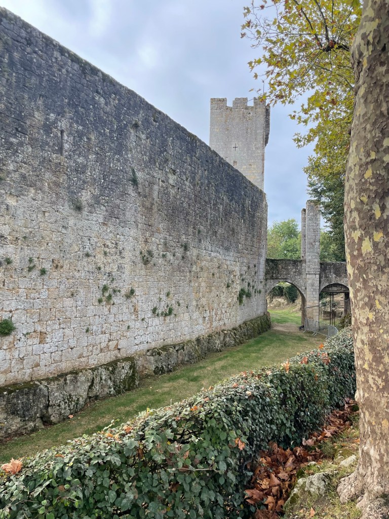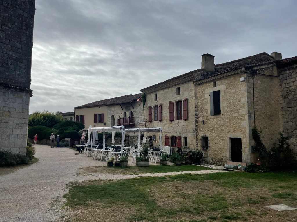 I spent about an hour in Larresingle, about 6 km into today’s walk. It is the smallest fortified village in France and one of the few remaining in this part of France with its walls intact. Straight out of a medieval storybook. Walls all around, surrounded by a moat (dry), castle and church in the center, a bit of open space, and houses and shops built against the interior of the wall.