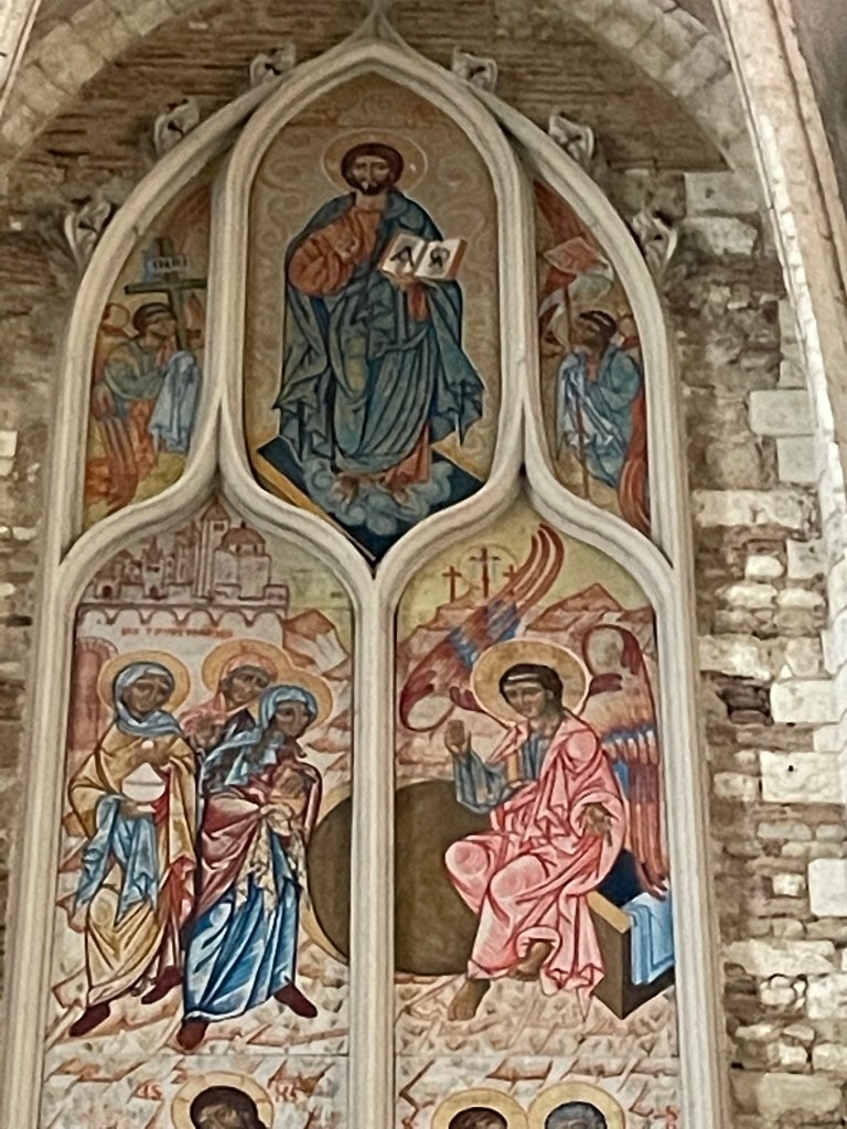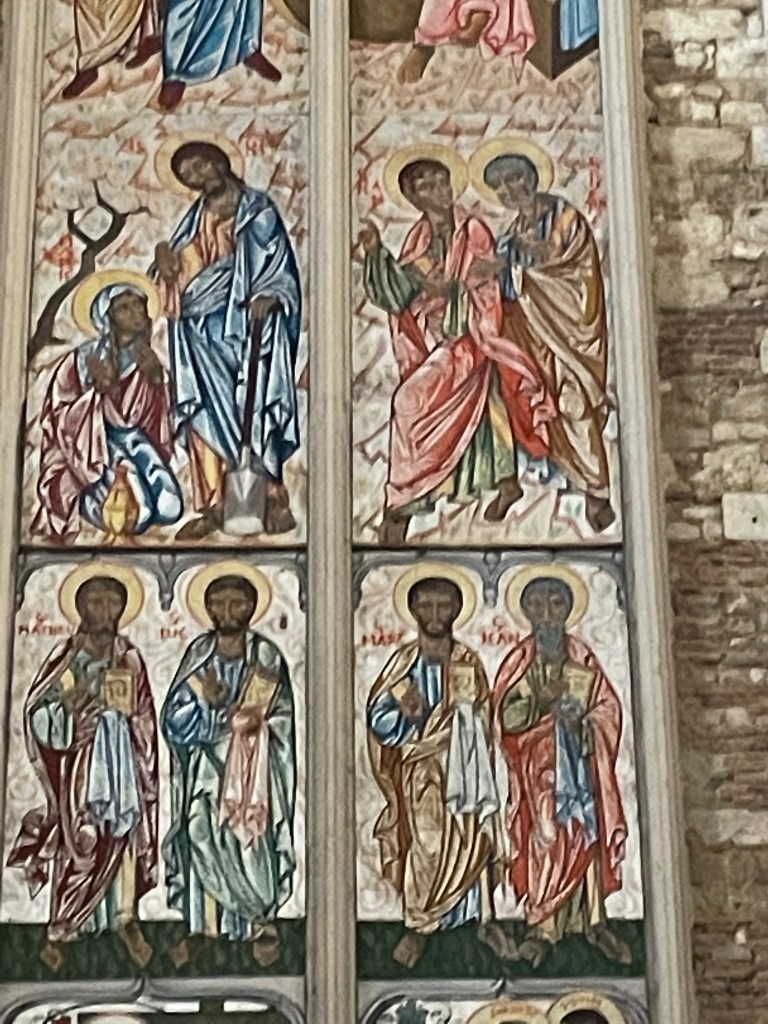 The murals in the church were beautiful and date from the 14th century. One of them is centered around the story of St. Blaise, a 4th century bishop and doctor in Armenia known for being able to help people with objects stuck in their throats. What a specialty huh? He later became known for healing souls and several miracles were attribute to him. The second mural at the bottom is St George killing the dragon.